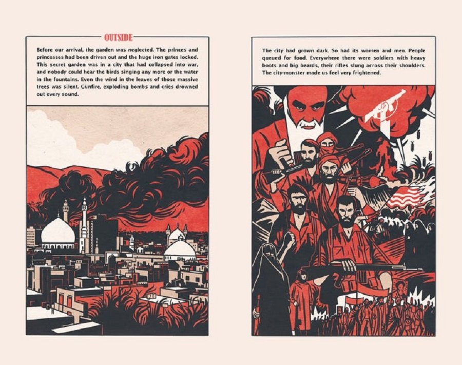 Inside the garden walls, there are pomegranate trees, tall grasses hiding all kinds of insects, and a pond with a carp that is one hundred years old. Outside, where the city monster breathes darkly, there are bombs and soldiers with heavy boots and big beards. One day, a boy called Massoud climbs over the wall and makes friends with Chiara. They don’t speak the same language, but together they invent the kingdoms of Outside-Inside and Inside-Outside. Is their secret safe, though?