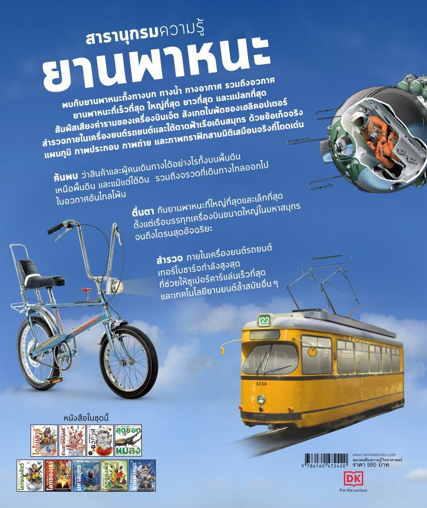 สารานุกรมภาพที่จะพาไปสำรวจยานพาหนะและการขนส่งในรูปแบบที่ไม่เคยเห็นมาก่อนค้นพบเรื่องราวเกี่ยวกับการทำงานของยานพาหนะหลายร้อยชนิดที่เร่ง ความเร็วอยู่บนถนน ลอยน้ำ บิน หรือแม้แต่พุ่งทะยานสู่อวกาศ รวมถึงยานพาหนะที่ทำลายสถิติ