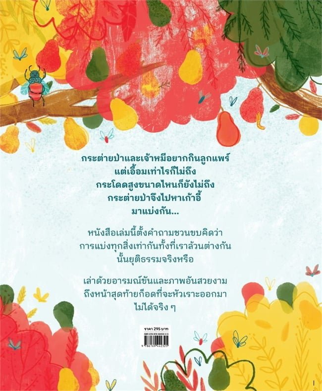 กระต่ายป่าและเจ้าหมีอยากกินลูกแพร์ แต่เอื้อมเท่าไหร่ก็ไม่ถึง กระโดดสูงขนาดไหนก็ยังไม่ถึง กระต่ายป่าจึงไปหาเก้าอี้มาแบ่งกัน... การแบ่งทุกสิ่งเท่ากันทั้งที่เราล้วนต่างกันนั้นยุติธรรมจริงหรือ