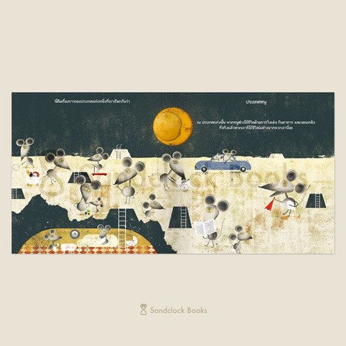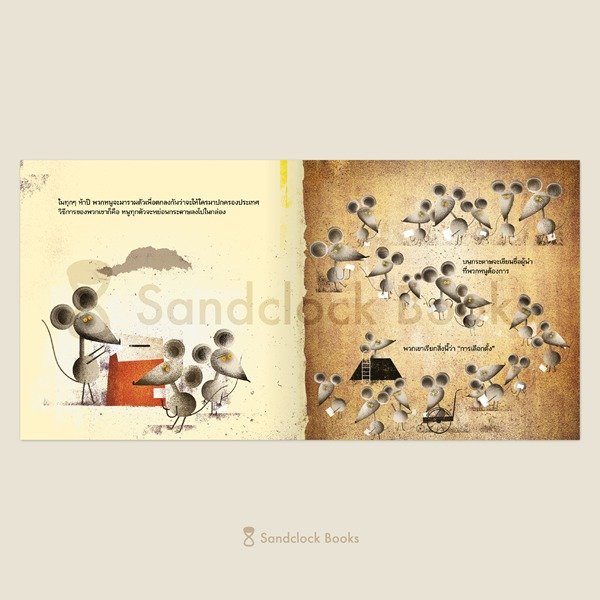 ประเทศหนู ฉบับนี้คือเรื่องราวที่ได้รับแรงบันดาลใจจากสุนทรพจน์เมื่อปี ค.ศ.1944 ของทอมมี่ ดักลาส นักการเมืองชาวแคนาดาผู้เป็นได้ก้าวขึ้นเป็นรัฐบาลสายสังคมนิยมคนแรก บรรดา ‘หนู’ ทั้งหลายในเรื่องคือภาพแทนของประชาชนที่จะเลือก ‘แมว’ มาเป็นผู้นำของพวกเขา ทว่าโดยธรรมชาติของแมวแล้ว พวกมันล่าและกินหนูเป็นอาหาร เหมือนดั่งนักการเมืองที่จะแสวงหาประโยชน์จากผู้คน ดังนั้นข้อกฎหมายต่างๆ ที่แมวผู้เถลิงอำนาจกำหนดขึ้นในประเทศหนูจึงมีเพื่อให้พวกมันเองได้อิ่มหมีพีมัน มีเนื้อหนูเข้าปากในทุกวัน โดยที่หนูๆ ทั้งหลายกลับไม่รู้ตัวเลยว่าพวกตนกำลังจับตัวเองใส่พานถวายแมวเช่นนี้ และยังคงเลือกแมวมาเป็นผู้นำต่อไปเรื่อยๆ เพราะยึดติดกับความคิดฝังหัวอันยากจะเปลี่ยนแปลง ถ้าแมวดำไม่ดีก็เลือกแมวขาวสิ ถ้าแมวขาวไม่ดีก็เลือกแมวดำสิ หรือจะลองเลือกทั้งสองสีมาบริหารร่วมกัน เลือกแมวลายทาง เลือกแมวลายจุด...