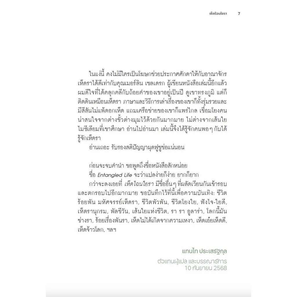 เห็ดไฉนใยรา แปลโดย กิตติศักดิ์ โถสมบัติ, เมธิรา เกษมสันต์ และ แทนไท ประเสริฐกุล จากหนังสือ Entangled Life: How Fungi Make Our Worlds, Change Our Minds & Shape our futures (ซื้อลิขสิทธิ์มาอย่างถูกต้อง) ซึ่งขายลิขสิทธิ์แปลไปแล้วกว่า 20 ภาษา มียอดขายรวมกว่า 1 ล้านเล่ม และได้รับรางวัลชนะเลิศจากหลายเวที เช่น Royal Society Science Book 2021, Wainwright Prize 2021, Taiwan Openbook Award 2021, The Guild of Food Writers Awards 2021, Council on Botanical and Horticultural Libraries Literature Award 2021, Nautilus Book Awards Grand Award 2020
