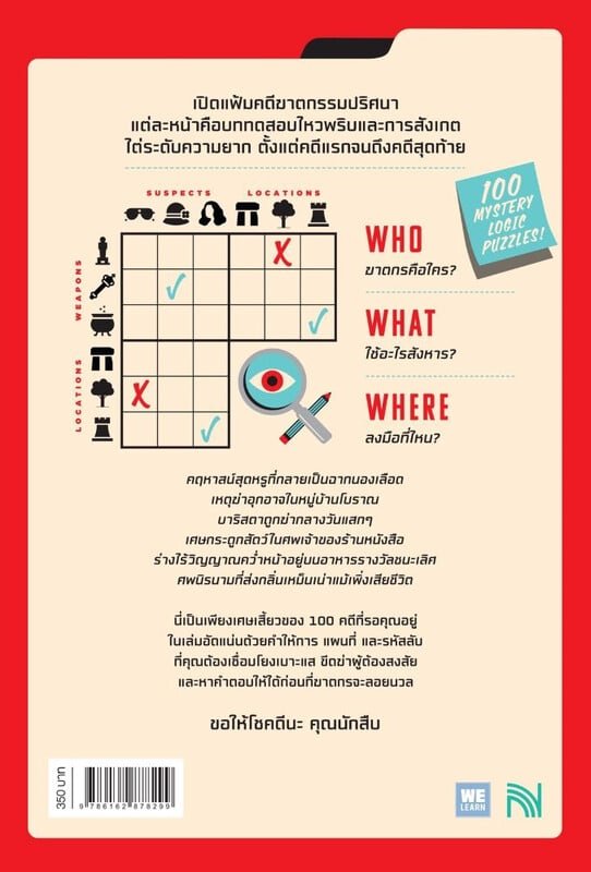 100 คดีปิดไม่ลง ที่คุณต้องไขให้ได้ใน 1 หน้ากระดาษ เปิดแฟ้มคดีฆาตกรรมปริศนา แต่ละหน้าคือบททดสอบไหวพริบและการสังเกต ไต่ระดับความยาก ตั้งแต่คดีแรกจนถึงคดีสุดท้าย