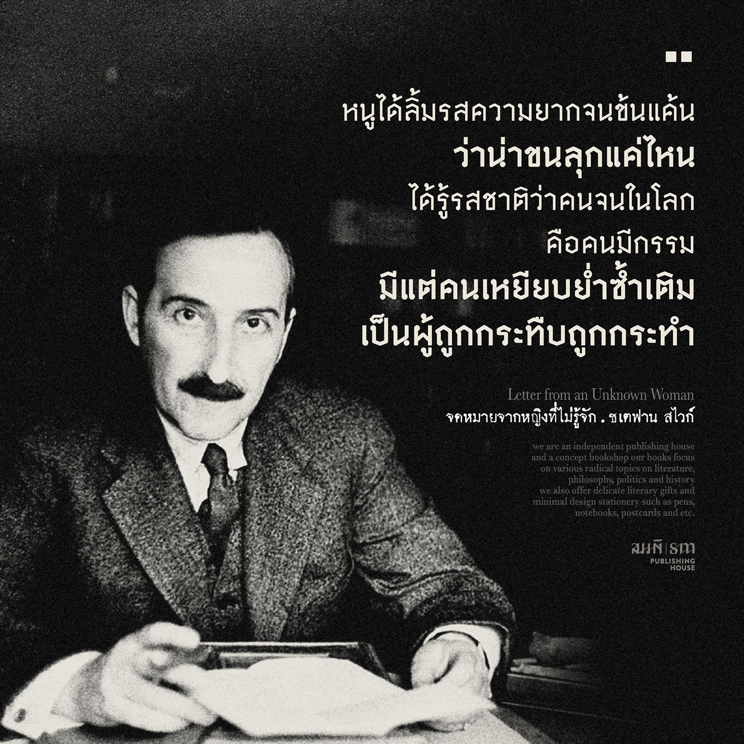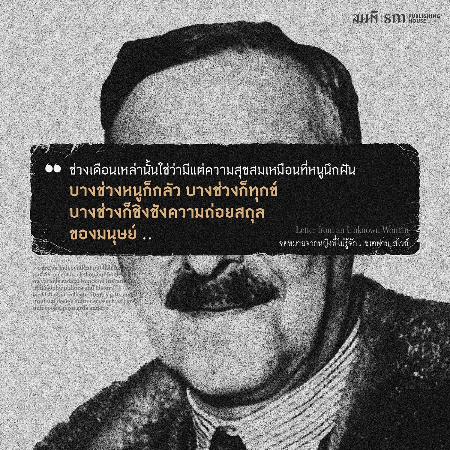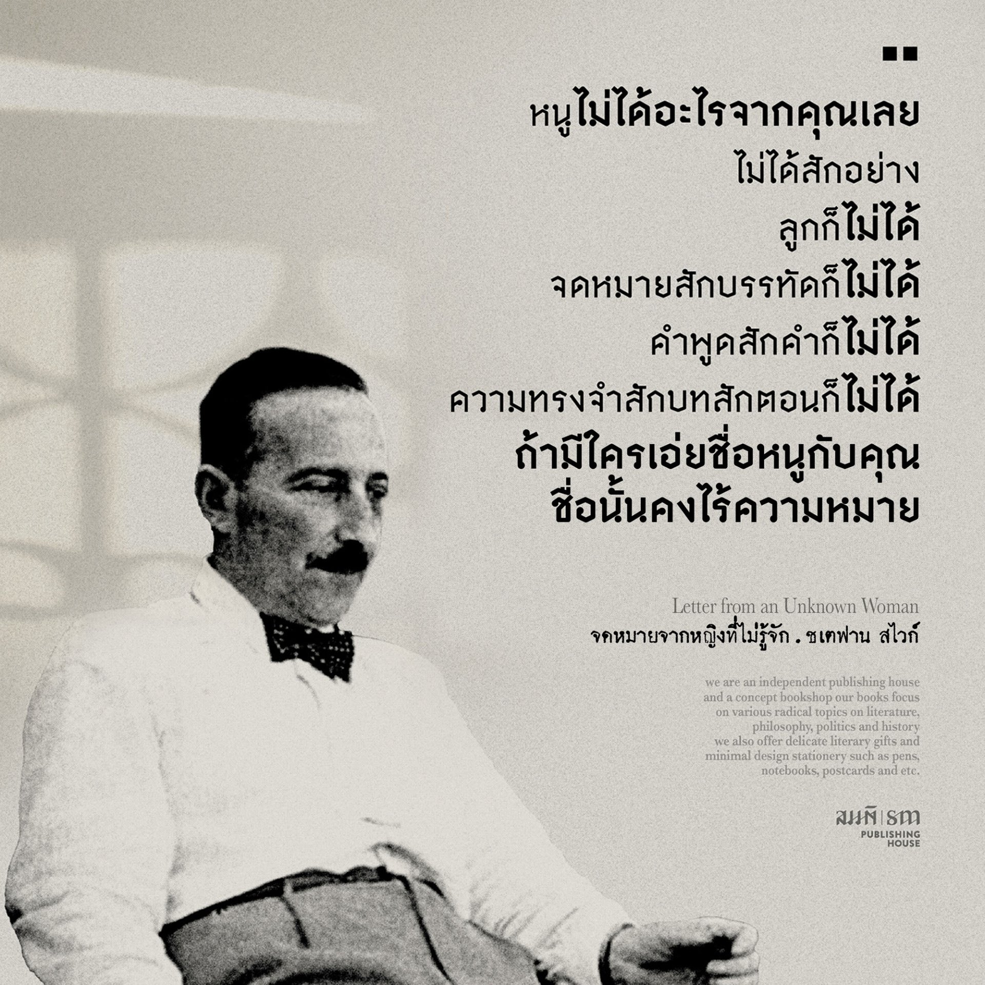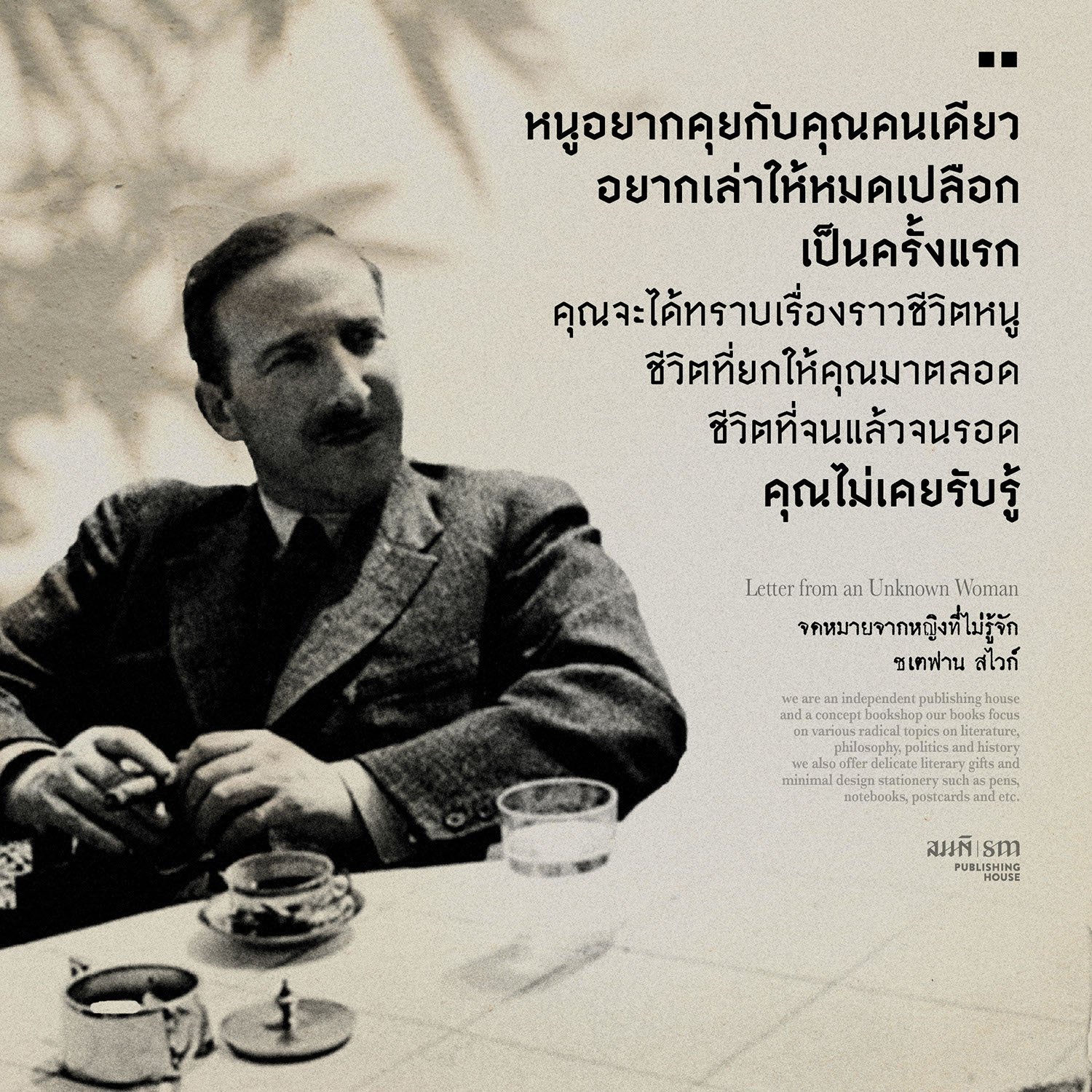 'จดหมายจากหญิงที่ไม่รู้จัก' เป็นหนึ่งในงานเขียนที่มีชื่อเสียงที่สุด! ได้รับความนิยมจากนักอ่านอย่างมาก และแปลเป็นภาษาต่างๆ เช่น ฝรั่งเศส อังกฤษ และจีน จากปลายปากกาของ Stefan Zweig นักเขียนออสเตรียที่มีผลงานแปลมากที่สุดในโลกช่วง 1920s และ 1930s