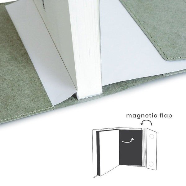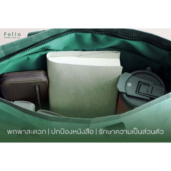วัสดุ ทำจากเส้นใยเซลลูโลสคุณภาพสูง เป็นมิตรกับสิ่งแวดล้อม ย่อยสลายได้ มีน้ำหนักเบาทนทานและซักทำความสะอาดได้หากสกปรก หนังสือสามารถปรับขนาดได้โดยเลื่อนหน้าปก