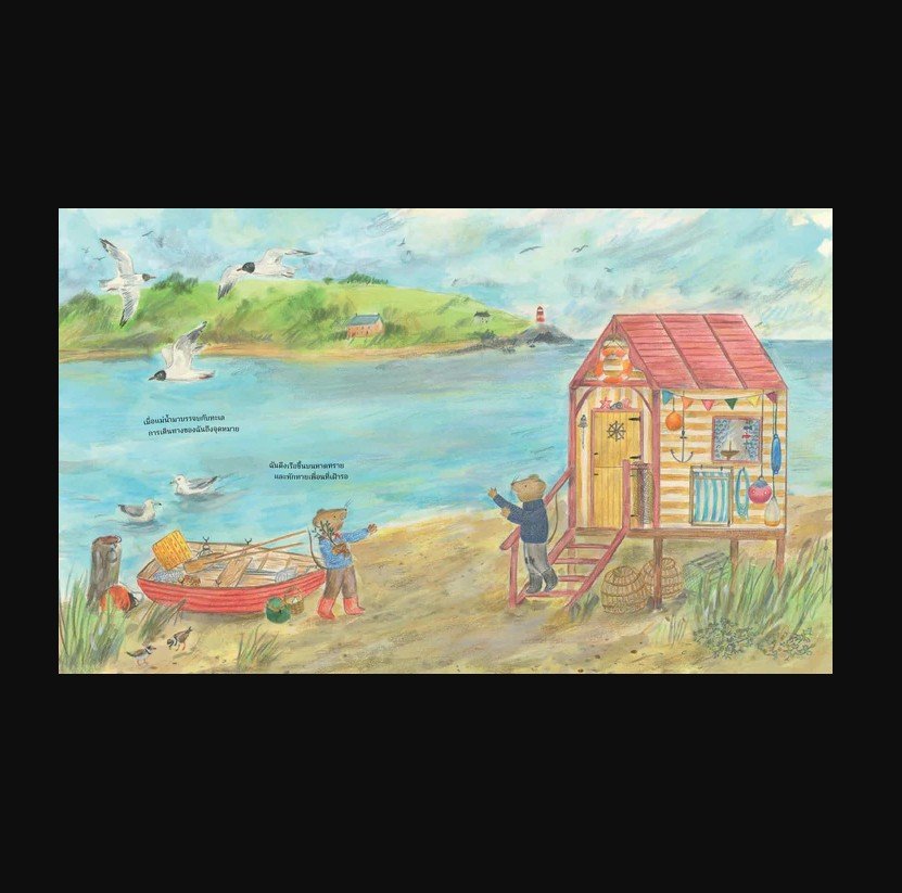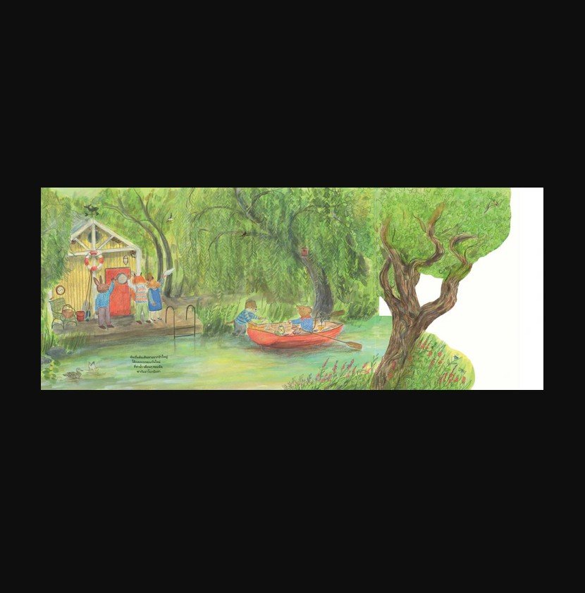 พลิกไปด้านหลังหนังสือเพื่อเรียนรู้เรื่องพืช นก แมลงและสัตว์ที่อาศัยอยู่ริมน้ำ รวมถึงสิ่งของที่หนูเตรียมไว้สำหรับการเดินทางครั้งนี้