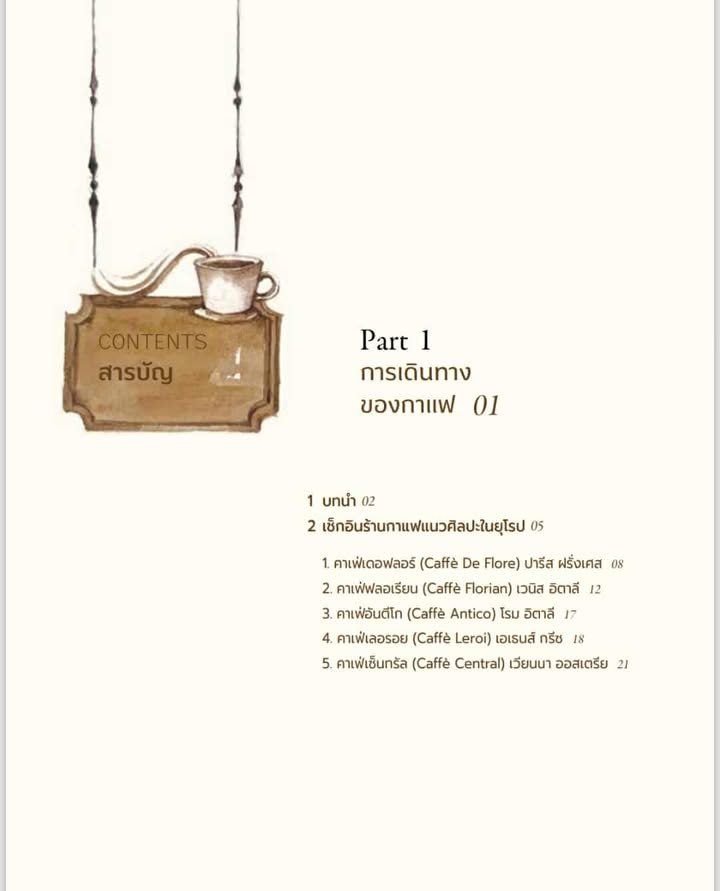 แรงบันดาลใจในการเปิดร้านกาแฟของจิตรกรสีน้ำชาวจีน เนื้อหาเริ่มตั้งแต่การเดินทางเก็บรายละเอียดทุกอย่างของร้านกาแฟแนวศิลปะจากยุโรป เทคนิคในการตกแต่งร้าน แบบแปลน เมนู และเรื่องราวที่อบอุ่นหัวใจของผู้คนในร้านกาแฟ โดยมีจุดน่าสนใจอยู่ที่ภาพวาดสีน้ำกว่า 200 ภาพที่ผู้เขียนวาดเอง หนังสือภาพเล่มนี้ถ่ายทอดวัฒนธรรมและเสน่ห์ของการทำร้านกาแฟที่จะพาผู้อ่านดื่มด่ำไปกับ 'หัวใจของร้านกาแฟในฝัน' อย่างครบถ้วนเสมือนเพื่อนสนิทมาเล่าประสบการณ์ที่จุดประกายให้เปิดร้านกาแฟตั้งแต่วันแรกให้ฟัง