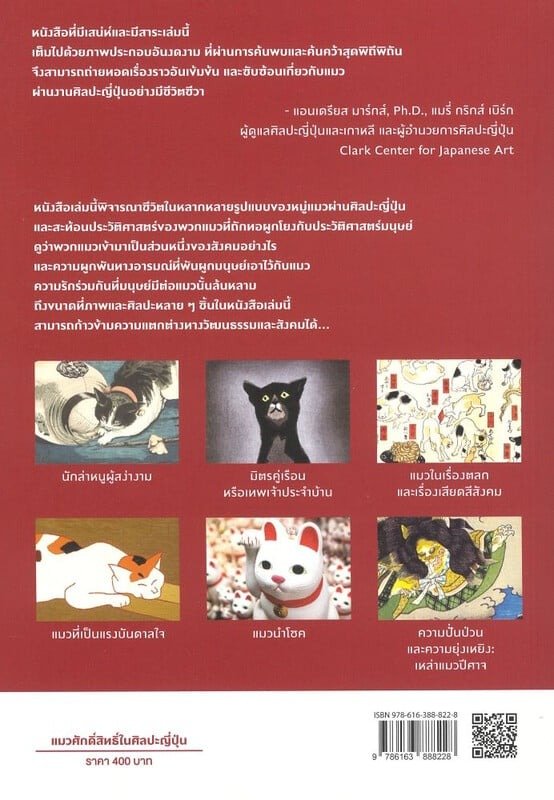 แมวศักดิ์สิทธิ์ในศิลปะญี่ปุ่น แปลจาก Divine Felines: The Cat in Japanese Art โดย รีแอนนัน พาเจท ถ่ายทอดความสัมพันธ์ระหว่างแมวกับสังคมญี่ปุ่นผ่านประวัติศาสตร์ ศิลปะ และคติความเชื่อ ตั้งแต่บทบาทแมวในฐานะนักล่าหนูยุคแรก จนถึงการเป็นสัตว์เลี้ยงคู่บ้านและสัญลักษณ์ทางวัฒนธรรม