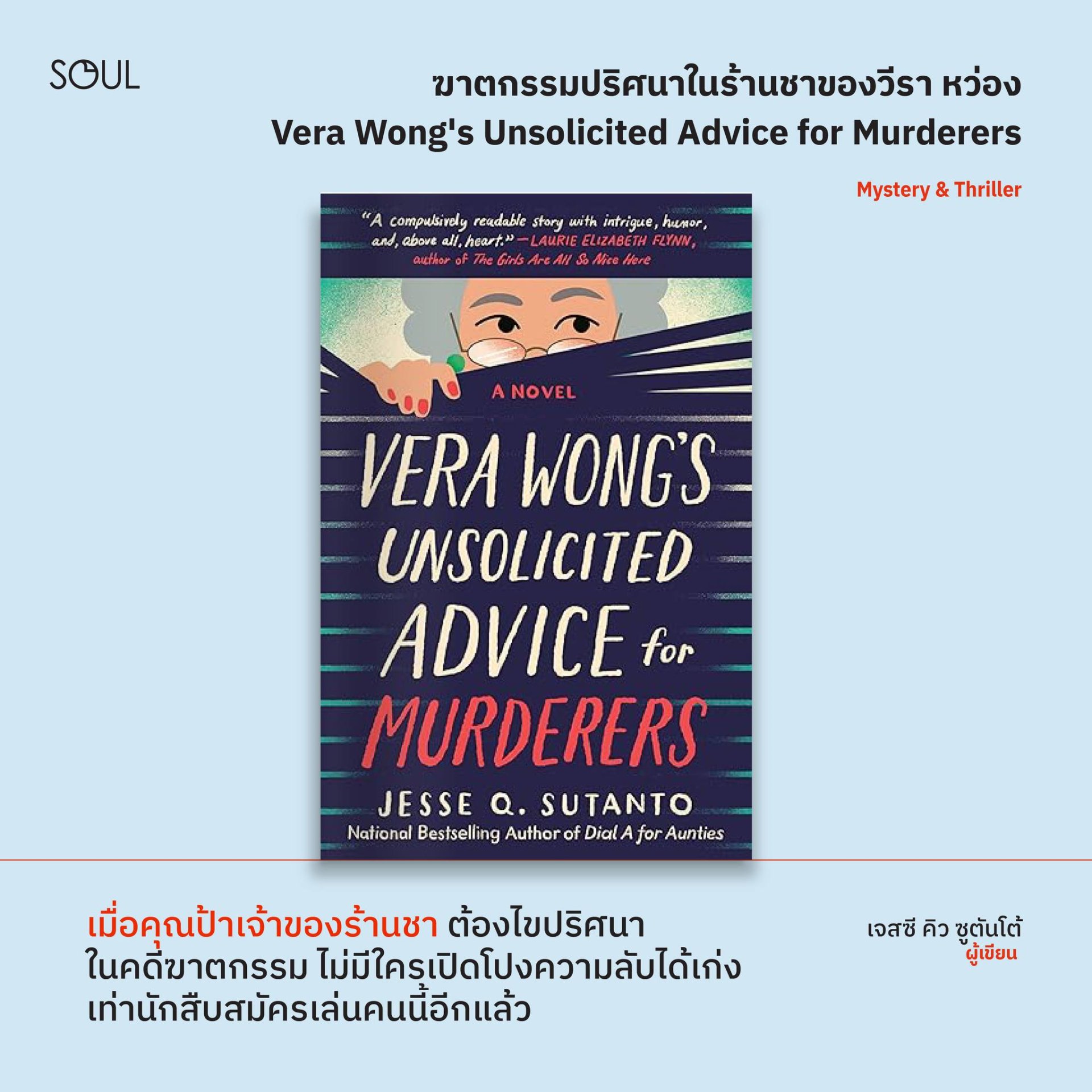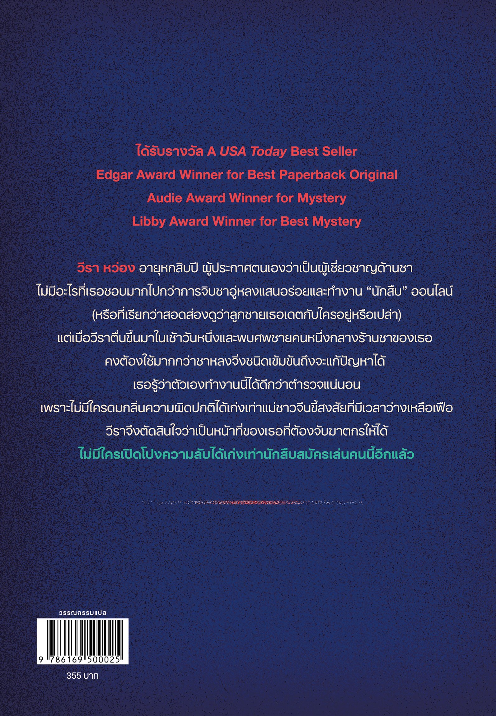 วีรา หว่อง อายุหกสิบปี ผู้ประกาศตนเองว่าเป็นผู้เชี่ยวชาญด้านชา ไม่มีอะไรที่เธอชอบมากไปกว่าการจิบชาอู่หลงแสนอร่อยและทำงาน “นักสืบ” ออนไลน์ (หรือที่เรียกว่าสอดส่องดูว่าลูกชายเธอเดตกับใครอยู่หรือเปล่า) แต่เมื่อวีราตื่นขึ้นมาในเช้าวันหนึ่งและพบศพชายคนหนึ่งกลางร้านชาของเธอ คงต้องใช้มากกว่าชาหลงจิ่งชนิดเข้มข้นถึงจะแก้ปัญหาได้
