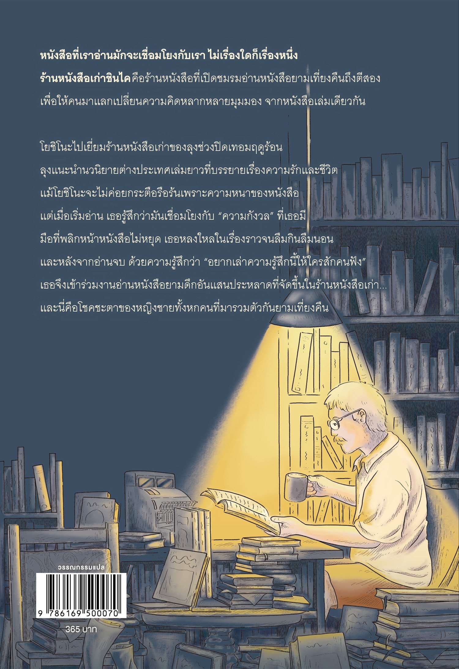 ร้านหนังสือเก่าชินไคคือร้านหนังสือที่เปิดชมรมอ่านหนังสือยามเที่ยงคืนถึงตีสอง เพื่อให้คนมาแลกเปลี่ยนความคิดหลากหลายมุมมองจากหนังสือเล่มเดียวกัน
