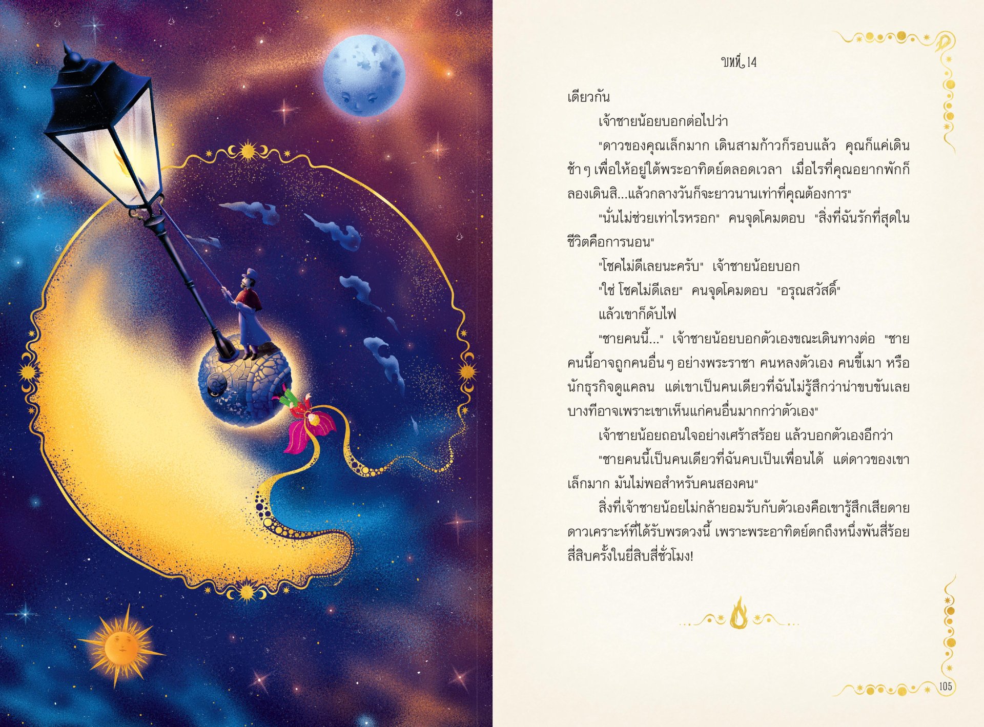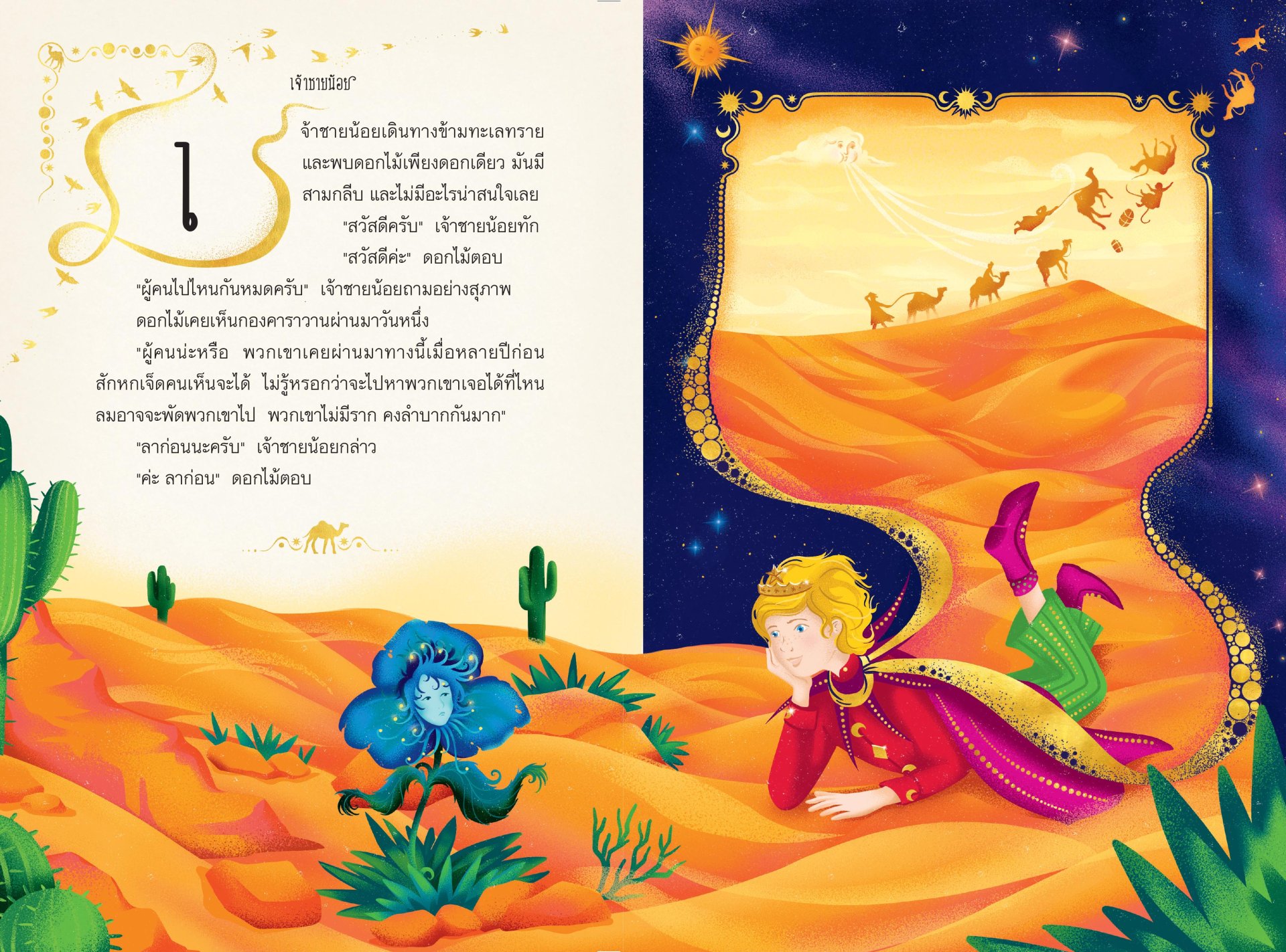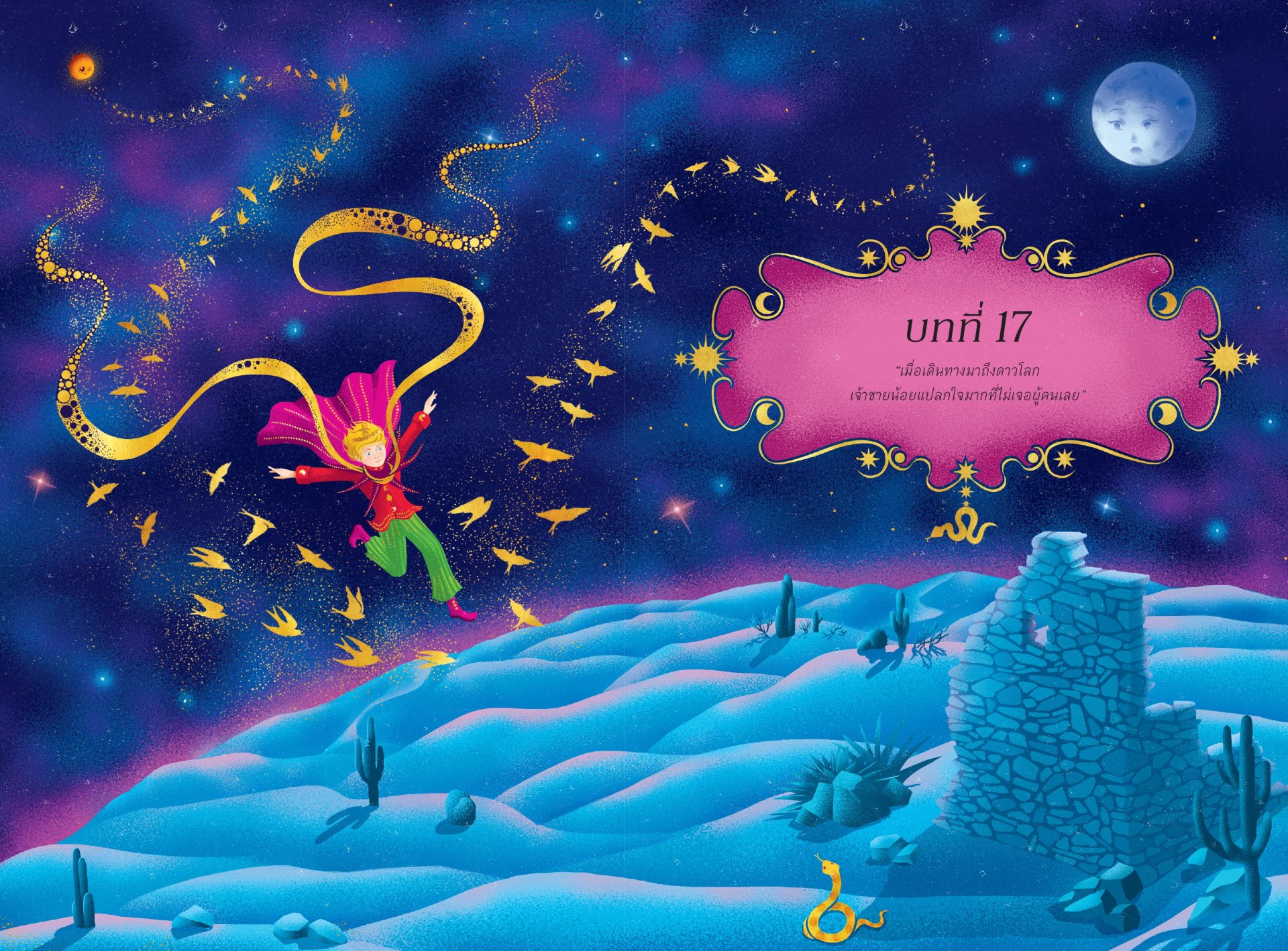 โบยบินสู่การเดินทางที่เปี่ยมไปด้วยมนตร์ขลังและศิลปะแห่งภาษาไปกับเจ้าชายน้อยผลงานชิ้นเอกของอองตวน เดอ แซงแต็กซูเปรีฉบับพิเศษนี้ ผ่านภาพงดงามตระการตา สีสันสดใส และภาพประกอบอินเทอร์แอ็กทีฟแปดภาพ ติดตามเจ้าชายน้อยจากดาวเคราะห์ดวงหนึ่งไปยังอีกดวงหนึ่ง ทำให้กุหลาบของเขาผลิบาน นับจำนวนครั้งที่พระอาทิตย์ตกดิน สนทนาปรัชญากับสุนัขจิ้งจอก และท่องไปในลายริ้วของทะเลทราย...