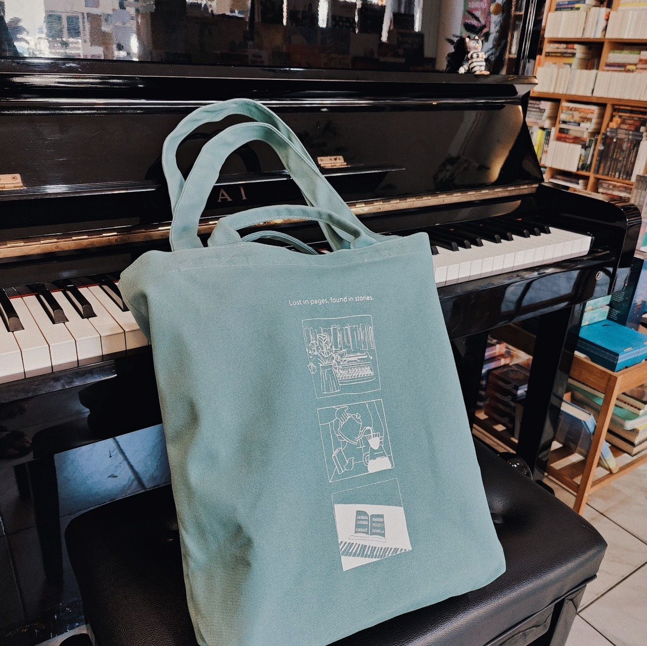กระเป๋าผ้า Lost in pages, Duo-Strap / Fathom