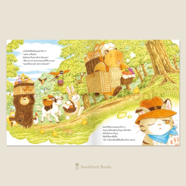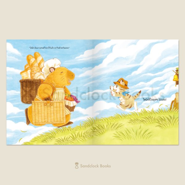 แน่นอนว่าเล่มนี้ยังคงมีเมนูอร่อยชวนให้ท้องร้องดังจ๊อก...ก...ก มาเสิร์ฟกันเหมือนทุกเล่มที่ผ่านมา โดยคราวนี้เป็นแซนด์วิชหลากหลายชนิดที่คุณคาปิบาราบรรจงทำให้เพื่อนรักอย่างสุดฝีมือ แต่ที่พิเศษคือ ทุกคนจะได้ออกเดินทางสู่ยอดเขาจ๊อกจ๊อกไปพร้อมแมวน้อยโคโค่ บนเส้นทางผ่านหมู่บ้านกร้วมกร้วม ป่าง่ำง่ำ และฟาร์มหงับหงับที่หลายคนคิดถึงจากเล่ม “ร้านขนมปังแถวยาว” ด้วย ซึ่งผ่านหลายที่ขนาดนี้ก็ย่อมจะต้องได้เจอเหล่าสัตว์คุ้นหน้าแห่งภูเขาจ๊อกจ๊อกร่วมเดินทางกันเป็นขบวนอย่างแน่นอน!